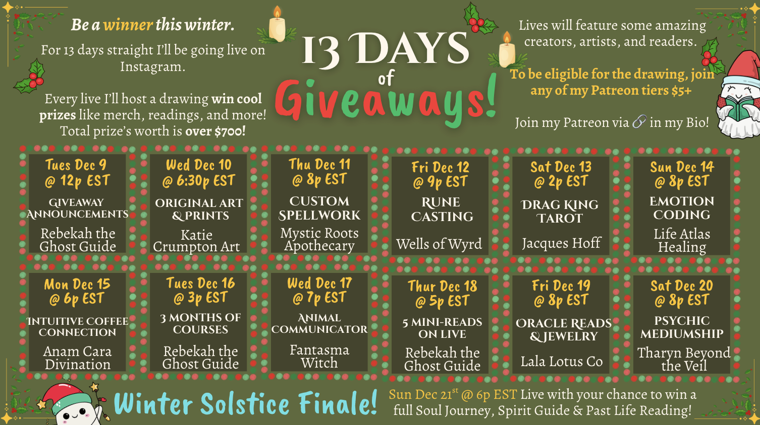See something you like? ๐ฎ You can win BIG this winter! Enter the 13 Days of Giveaways by joining my Patreon at any tier starting at just $5! I've never offered so many amazing ways to work with some fantastic readers, jewelers, artists, and more.